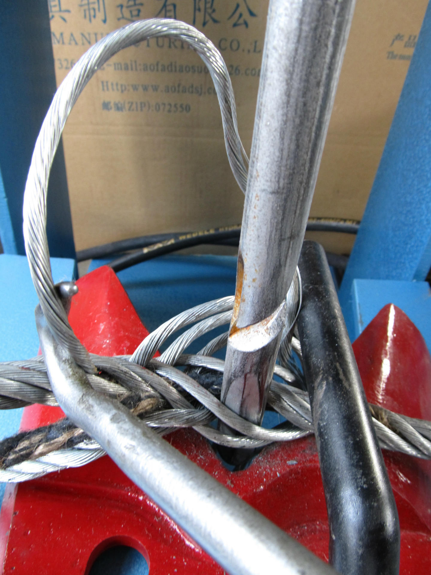由于這種辦法使用的時(shí)間比較長(zhǎng),而且在人們心目中這種辦法深入鋼絲繩比較多,就比較安全。只是存在各方面的缺點(diǎn),人工費(fèi)用比較高,而且效率比較高,拿一個(gè)直徑20的為一人一天只能做20-30根,而鋼絲繩壓套機(jī)的效率非常高,十倍于人工。有人會(huì)擔(dān)心安全上不如人工,實(shí)際上,權(quán)威檢測(cè)證明,鋼絲繩壓制的安全性更高,費(fèi)用比插編要低,這種方法會(huì)慢慢被接受。