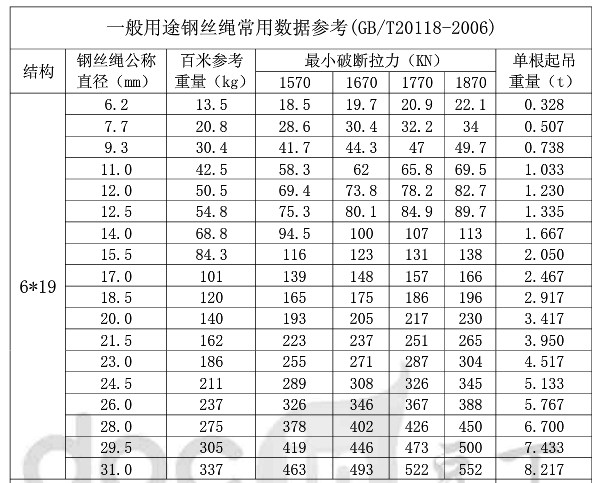 2、單根起吊重量:是指1670強(qiáng)度級(jí)的安全系數(shù)是6倍時(shí)的起吊重量。